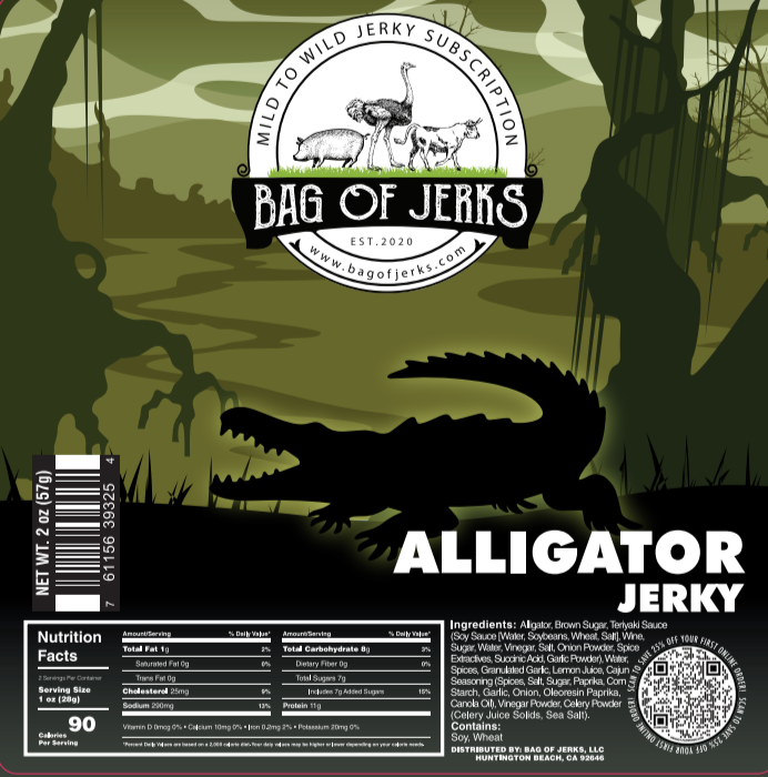 #AlligatorJerky #BagOfJerks #ExoticJerky #GatorSnack #BayouBite #CajunJerky #WeirdSnacks #JerkyAddict #SnackDifferent #WildMeat #HighProteinSnacks #PaleoSnacks #DareToSnack #GatorMeat #JerkyTime