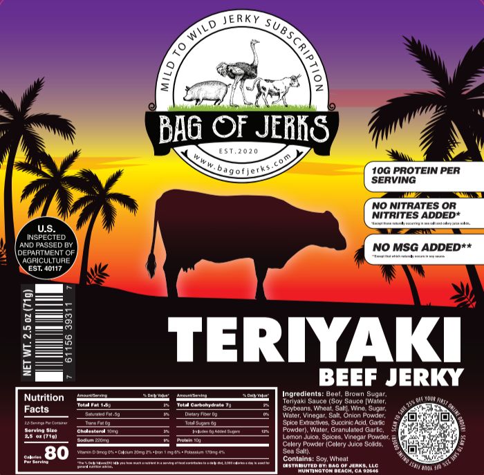 Made with premium beef, marinated in a blend of soy sauce, brown sugar, garlic, and ginger, this jerky delivers the perfect balance of sweet and savory in every bite.